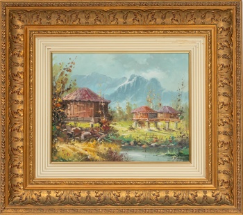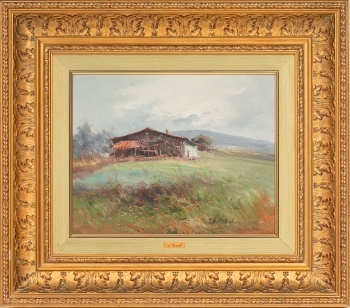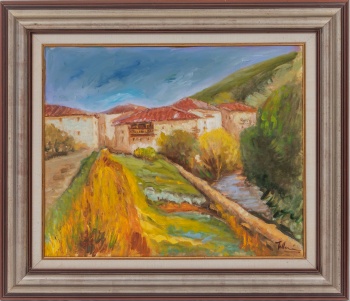 (S. XX) "Paisaje con caserío" Firmado: Borrel Óleo / Lienzo 31 x 39 cm.; 58 x 66 cm. (con marco)
