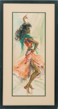 (San Fructuoso de Bages, Barcelona 1906) "La Chunga" Firmado: P. Clapera Acuarela / Ceras / Papel 50 x 19 cm.; 65 x 34 cm. (con marco)