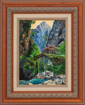 (S. XX) "Puente de la Jaya, Ruta del Cares por Bulnes" Óleo / Táblex 40 x 28 cm.; 63 x 52 cm. (con marco)
