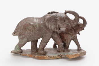 Figura en piedra representando elefantes. Firmado B. Chikumbirike.