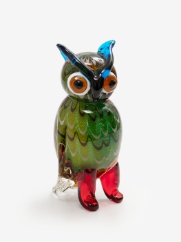 Figura en cristal de Murano en diferentes tonos representando búho.