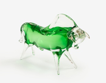 Figura en cristal de Murano en tono verde representando toro.