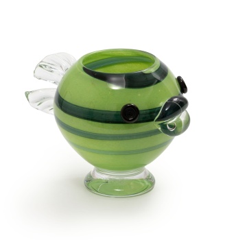 Jarrón en cristal color verde representando pez. Firmado Jan Erik.