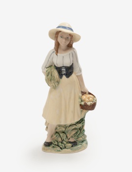 Figura en porcelana policromada representando joven con cesto. Sello en la base. Manufactura Porcelana Artística Levantina. España.