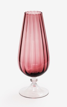 Copa en cristal color berenjena con decoración de gallones