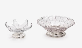 Lote compuesto por 2 centros en cristal tallado con decoración vegetal con base en plata. Estilo Luis XVI. Marcas de platero.