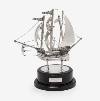 Figura en alpaca representando la carabela "Santa María". Base en resina.