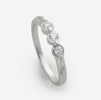 Tresillo en oro blanco con diamantes talla brillante con un peso total de 0,2 cts. aprox. Nº Anillero: 15. Peso: 2,7 grs.
