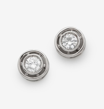 Pendientes solitarios en oro blanco con diamantes talla brillante con un peso total 2 cts. aprox.