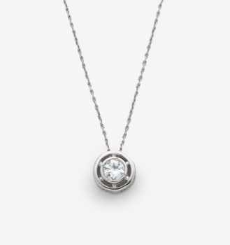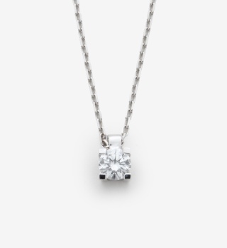 Cadena y colgante solitario en oro blanco con diamante talla brillante y un peso total de 0,23 cts. aprox. Peso: 1,8 grs.