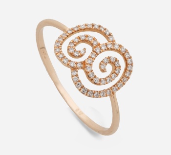 Sortija en oro rosa con diamantes talla brillante formando caracolas con un peso total de 0,2 cts. Peso: 1,1 grs.