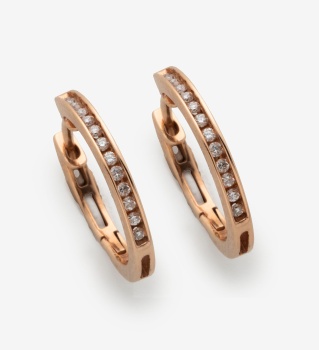 Pendientes de aro en oro amarillo con diamantes talla brillante con un peso total de 0,20 cts. Peso: 2,5 grs.