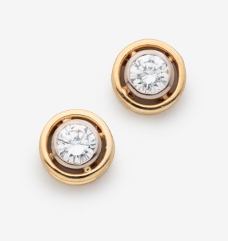 Pendientes chatón en oro amarillo y oro blanco con 2 diamantes talla brillante con un peso total de 0,90 cts. aprox.