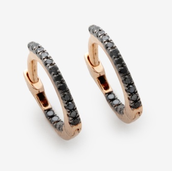Pendientes de aro en oro amarillo con diamantes talla brillante negros con un peso total de 0,25 cts. Peso: 0,9 grs.