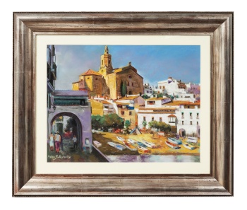 (Bilbao 1928 - 2011) "Albufeira. Portugal" Firmado: García Campos Ceras / Óleo / Tiza / Papel 23 x 31 cm. ; 54 x 62 cm. (con marco)