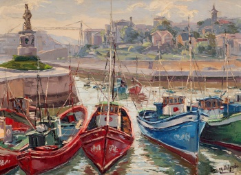 (Vizcaya S. XX) "Desde Santurce. Vizcaya" Firmado: Garcia Delgado Óleo / Lienzo 81 x 60 cm. ; 84 x 104,5 cm. (con marco)