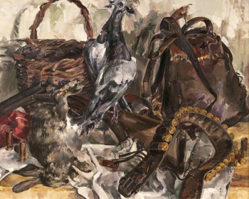 (Navarrete, La Rioja 1948 - Vitoria 2020) "Bodegón de caza" Firmado: García Díez Óleo / Lienzo 65 x 81 cm. ; 92 x 107,5 cm. (con marco)