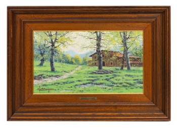 (Barcelona 1920) "Casa en el campo" Firmado: M. Tort Masgrau Óleo / Lienzo 20 x 40,5 cm. ; 42,5 x 59 cm. (con marco)