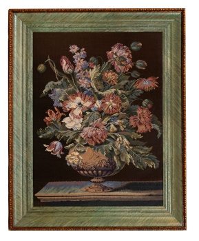 (S. XX) "Jarrón con flores" Petit Point 84 x 63 cm. ; 105 x 84 cm. (con marco) (Marco deteriorado)