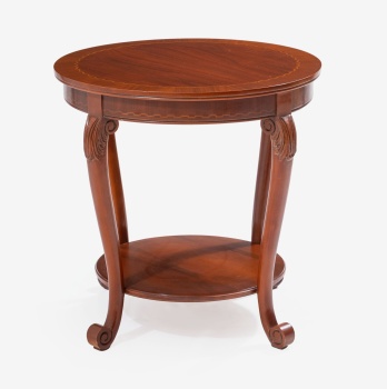 Velador en madera de caoba y marquetería con decoración vegetal. Estilo Luis XV.