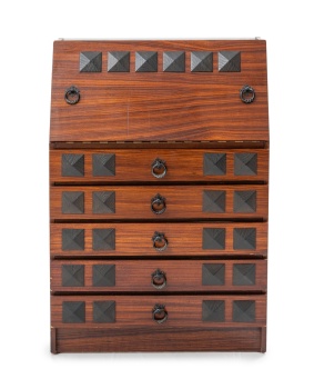 Secreter rústico en madera de roble con 5 cajones inferiores y departamentos interiores.