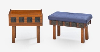 Época: S. XX Medidas: 46 x 51,5 x 46 cm. (mesilla); 41 x 63 x 34,5 cm. (escabel)