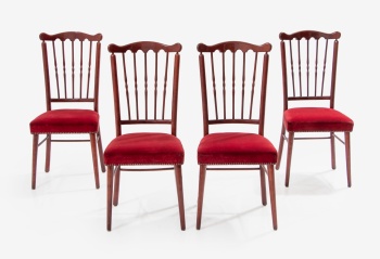 Conjunto de 4 sillas de comedor en madera de haya y asiento con tapizado de terciopelo rematando en tachuelas.