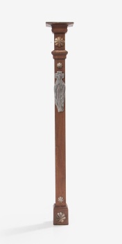 Columna en madera de caoba con figura en metal representando "Sagrado Corazón".