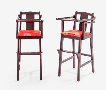 Pareja de tronas en madera de guinea con asiento tapizado. China.