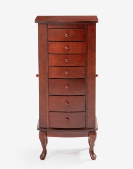 Mueble-joyero en madera de guinea con espejo interior en la encimera. Estilo Regencia.