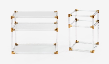 Conjunto de 2 mesas auxiliares en metacrilato simulando caña, remates en metal y encimeras en cristal.