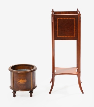 Época: S. XX Medidas: 29 x 65 x 23,5 cm. (jardinera); 54 x 26 x 26 cm. (paragüero)