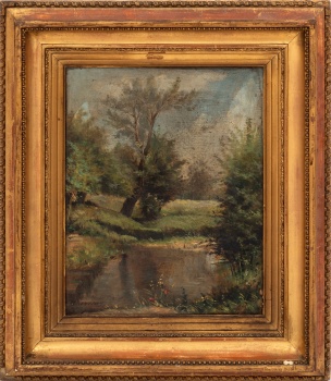 (Madrid 1851 - 1926) "Paisaje con río " Firmado: Larmig Óleo / Lienzo 32,5 x 24,5 cm. ; 49 x 42,5 cm. (con marco)