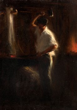 (Pp. S. XX) "Forjador" Firmado: V. Balbastre Óleo / Lienzo 45 x 33 cm.; 60,5 x 47 cm. (con marco)