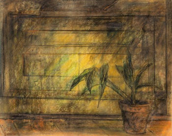 (1943) "Interior con planta " Firmado: Barreto Pastel / Papel 38 x 46 cm.; 51 x 60 cm. (con marco) Anagramado