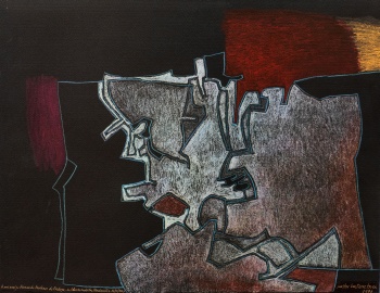 (Bermeo, Vizcaya 1924 - 2014) "Del circo" Firmado: Nestor Basterretxea 92 (a lapicero) Carboncillo / Papel 81 x 75,5 cm. (con marco)