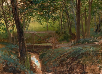 (Sevilla 1960 - Madrid 1938) "Paisaje con rio y puente " Firmado: G. Bilbao Óleo / Lienzo 18 x 28 cm.; 36 x 46 cm. (con marco)