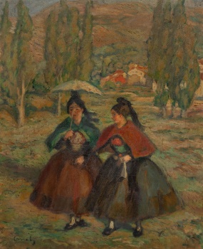 (Barcelona 1876 - 1931) "Salamantinas paseando por el campo" Firmado: Canals Óleo / Lienzo 65 x 52cm.; 74 x 61 cm. (con marco) Pequeña restauración
