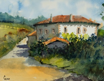(S. XX) "Vista de caserío en Sopuerta " Firmado: Casaus Acuarela / Papel 33 x 45 cm. ; 51 x 59 cm. (con marco)