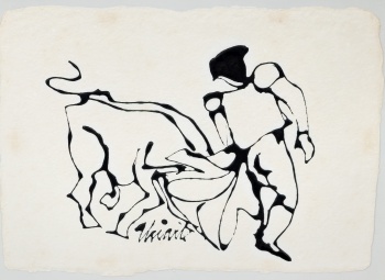 (Amorebieta, 1931) "Pase de torero" Firmado: Uriarte Tinta / Papel 30 x 40 cm.