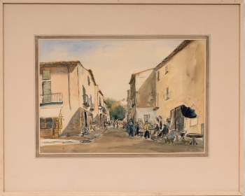 (Oix, Girona 1909 - La Bisbal de L´Empordà 1964) "Día de mercadillo" Firmado: Díaz Costa Acuarela / Papel 30 x 43 cm.; 50 x 63 cm. (con marco)