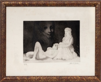 (Zaragoza 1916) "Tres presencias femeninas " Firmado: Alberto Duce (a lapicero) Grabado / Papel Ejemplar: P/A 50 x 65 cm.; 58 x 73 cm. (con marco)