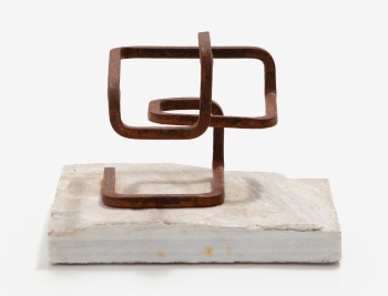 (Bruselas 1968) "Plano arquitectural" Firmado: Ariel Acero corte / Cuarcita blanca 30 x 23 x 23 cm.