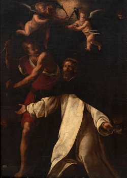 (Granada S. XVII) "Santo Domingo" Óleo / Lienzo 86 x 62 cm.; 99 x 75 cm. (con marco) (Bastidor necesita restauración)