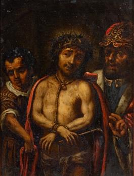 (S. XVII - S. XVIII) "Ecce-Homo" Óleo / Tabla 56 x 42,5 cm. ; 73 x 60 cm.(con marco)