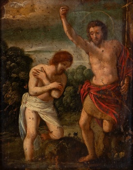 (S. XVII) "El bautismo de Cristo " Óleo / Cobre 21,5 x 16,5 cm.; 29,5 x 25,5 cm. (con marco)