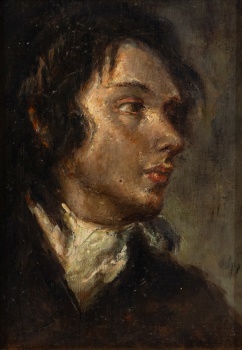 (S. XIX) "Retrato de joven " Óleo / Tabla 18 x 13 cm.; 28,5 x 23 cm. (con marco)