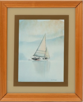 ( S. XX) "Velero " Firmado: Stepher Bleinberger Lámina / Papel  63,5 x 53,5 cm. (con marco)