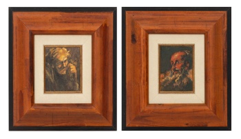 (Baracaldo, Vizcaya S. XX) "Personajes (pareja)" Óleo / Tabla 15 x 11 cm. ; 39 x 35,5 cm. (cada uno con marco)