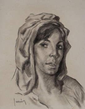 (Baracaldo, Vizcaya S. XX) "Joven con pañuelo " Firmado: Juanón Dibujo / Papel 41 x 31 cm.